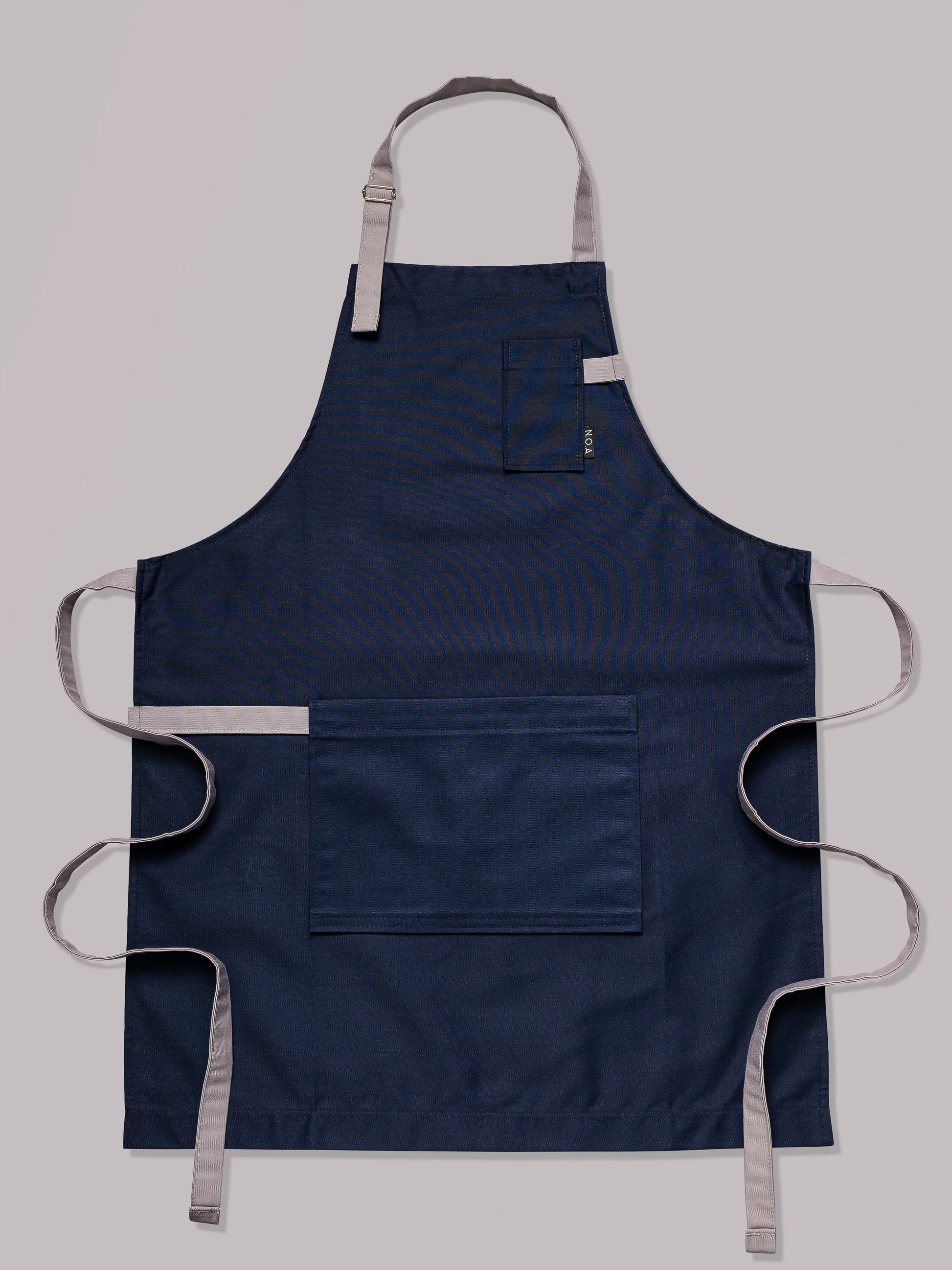 Șorț albastru navy chef NOA – ediție profesională cu bretele bej