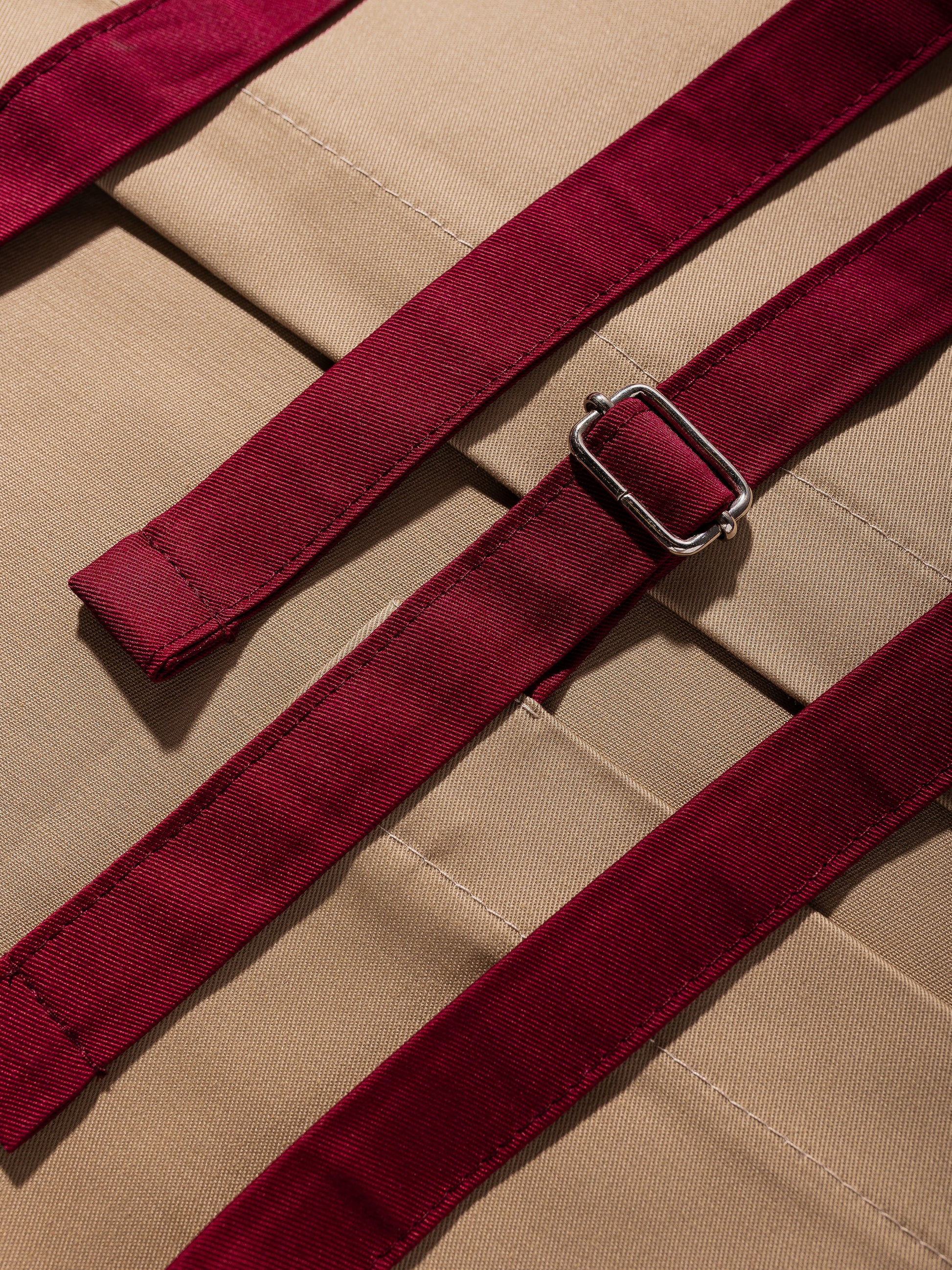 Șorț bej chef bucătar NOA – ediție profesională cu bretele burgundy