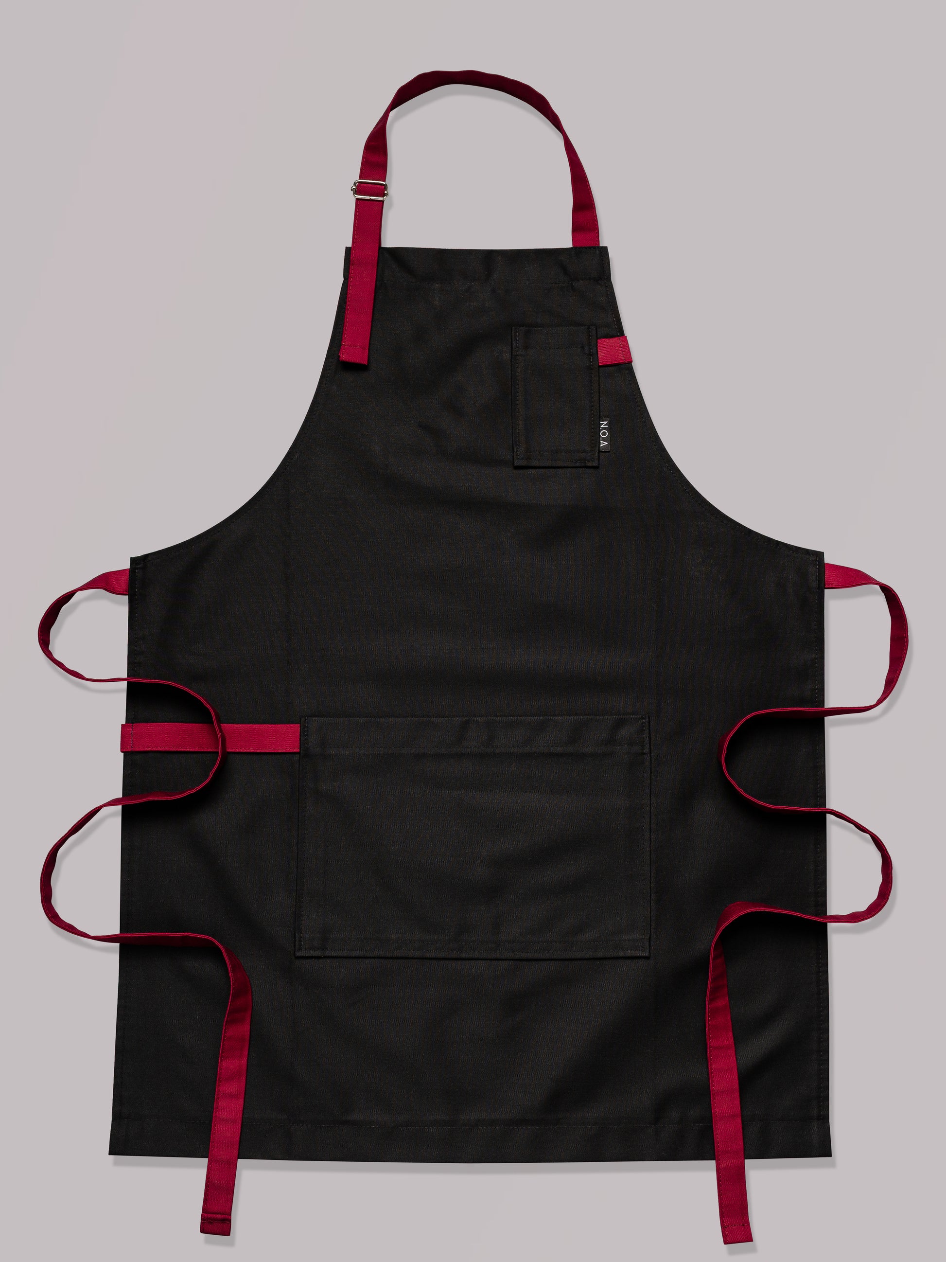 Șorț negru chef bucătar NOA – ediție profesională cu bretele burgundy
