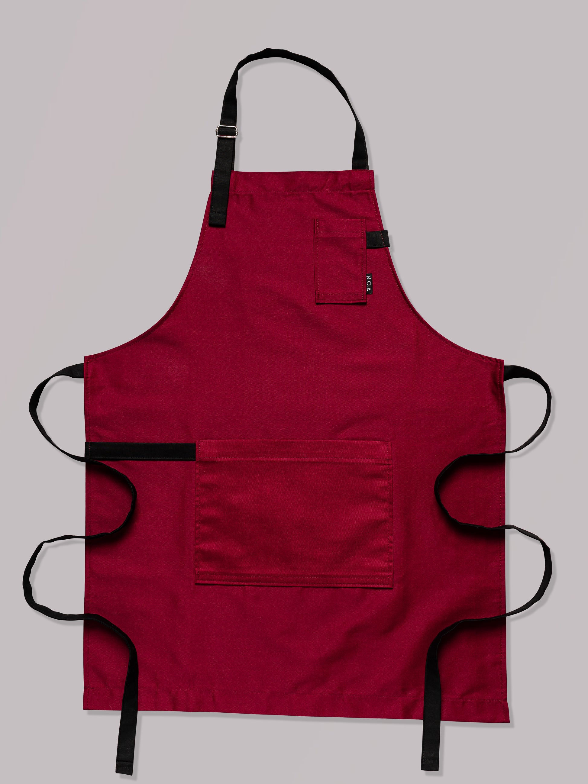 Șorț vișiniu chef NOA – ediție profesională cu bretele negre