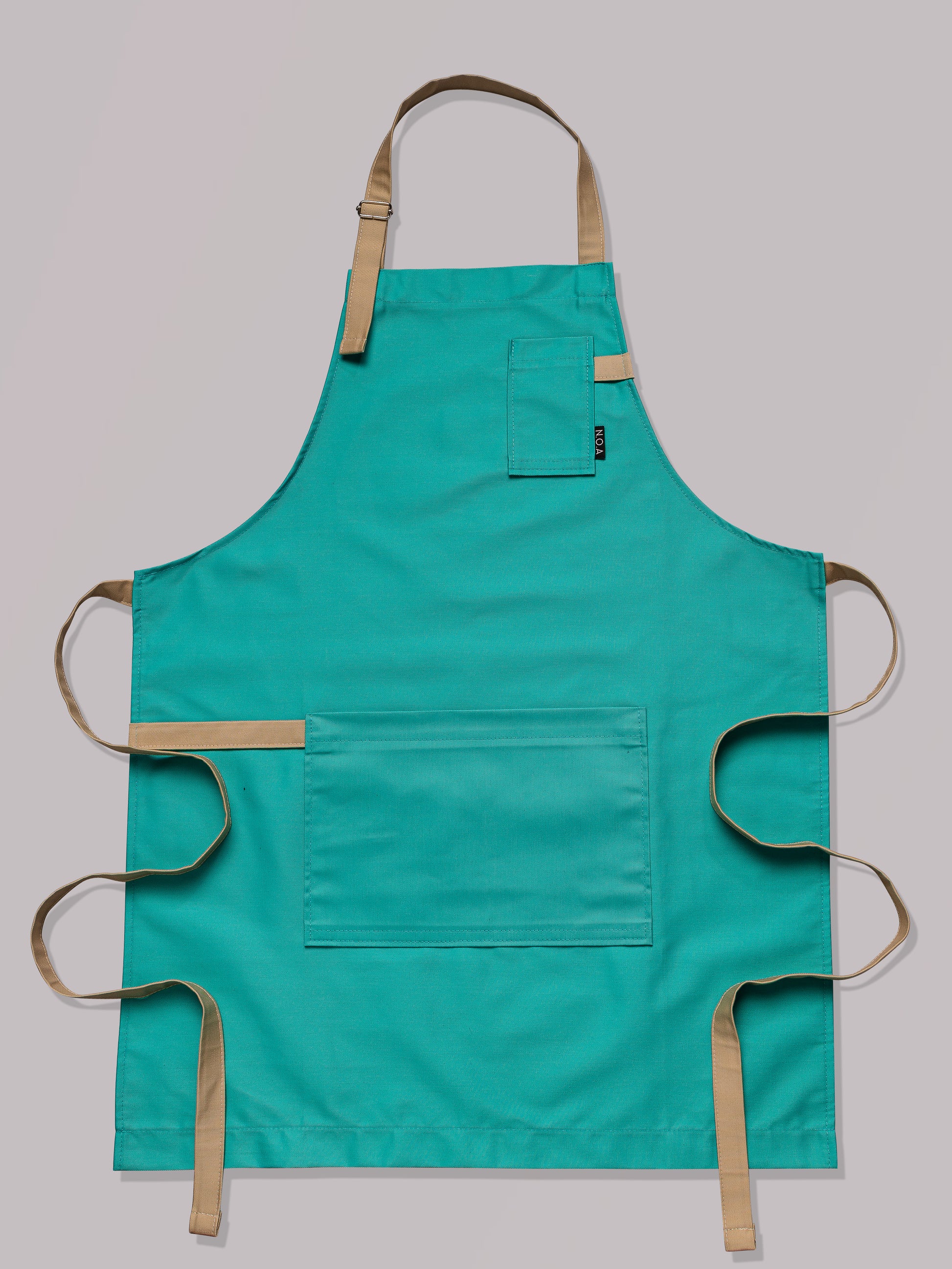 Șorț turcoaz chef NOA – ediție profesională cu bretele bej
