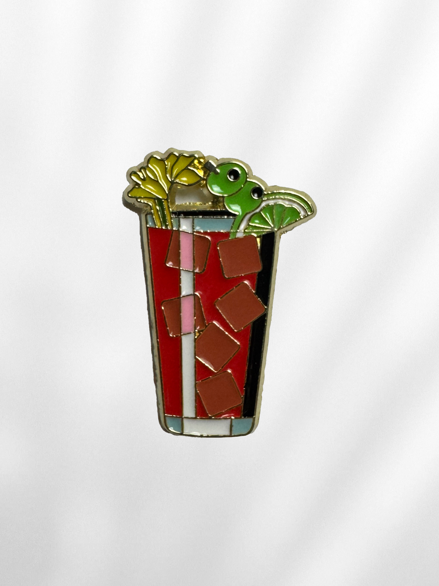 Țelină, lime, măsline, gheață și acel roșu inconfundabil – acest pin e tot ce iubești (sau urăști) la un Bloody Mary, concentrat într-o mini capodoperă cu personalitate.