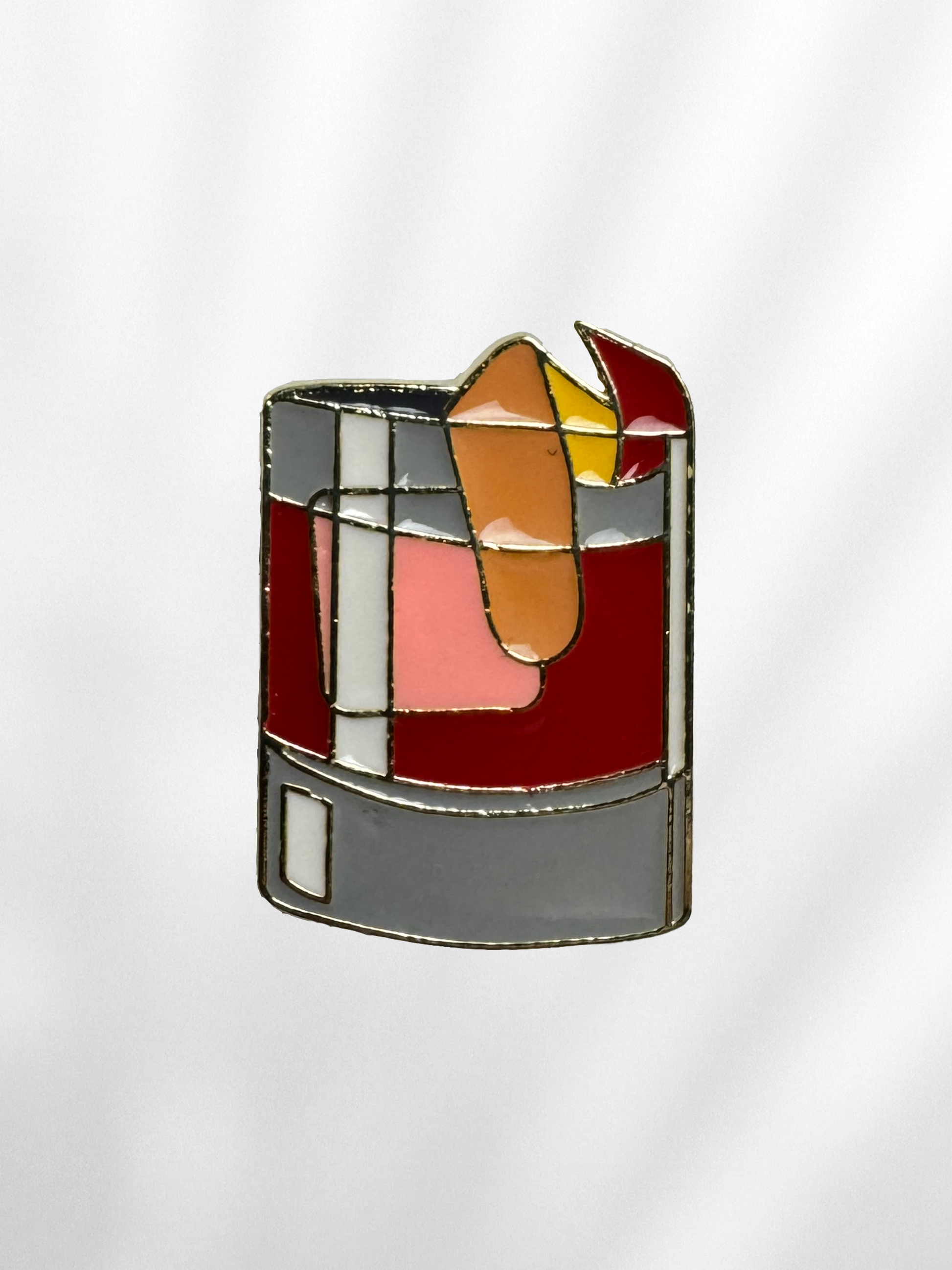 Un twist pe Negroni, dar cu whiskey – acest pin e pentru cei care știu ce beau și de ce. Portocală, roșu vibrant, pahar solid și acel vibe parizian cu accente de dramă controlată.