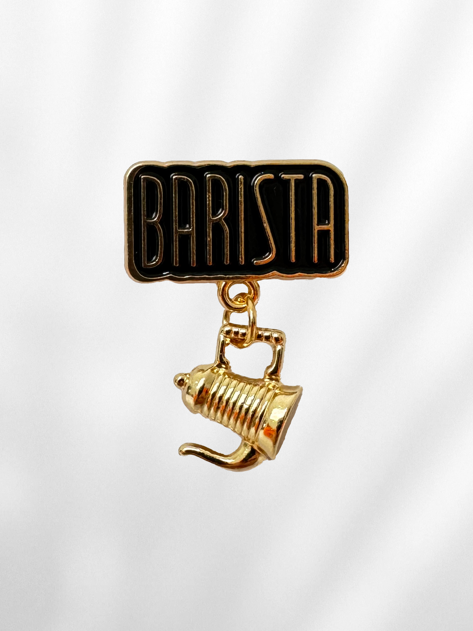 Dedicat adevăraților profesioniști ai cafelei! Acest pin sofisticat, cu un design elegant și un charm în formă de ibric, este perfect pentru barista pasionați și pentru toți cei care iau cafeaua în serios.