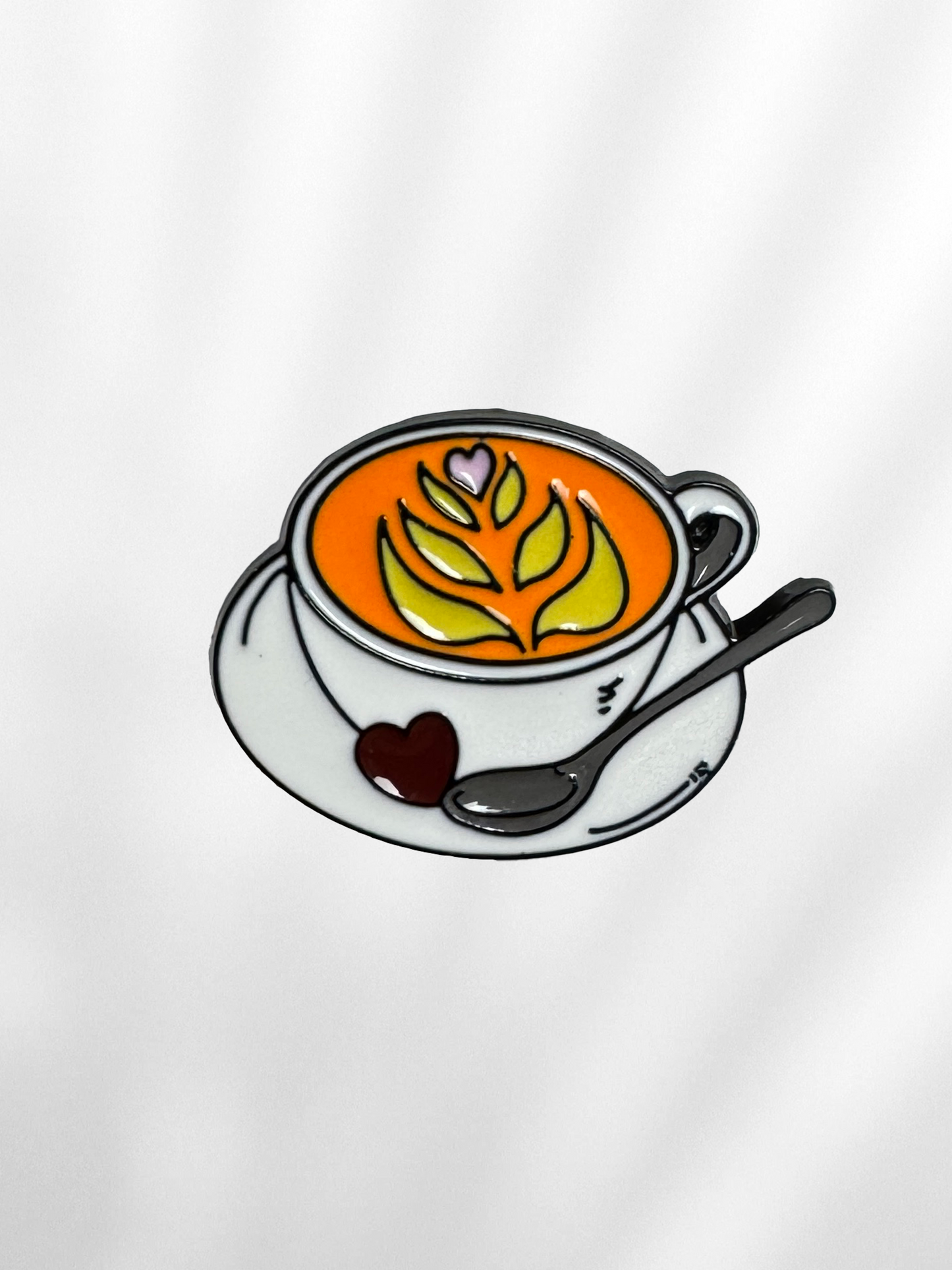 Un omagiu pentru barista-ul din tine sau pentru acel coffee shop în care ești deja client fidel. Cu inimă roșie pe farfurie și artă în ceașcă, acest pin e mic, dar plin de aromă vizuală.