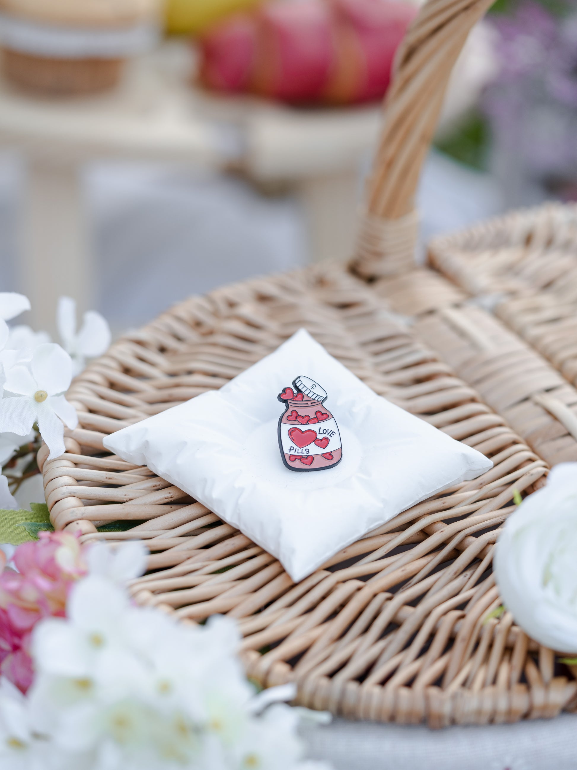 Câteodată, tot ce ai nevoie este un strop de dragoste! Acest pin adorabil, în formă de borcan cu pastile în formă de inimă, este perfectă pentru romantici, visători și pentru cei care cred în puterea iubirii. Un accesoriu ideal pentru a adăuga un plus de căldură și farmec oricărei ținute.