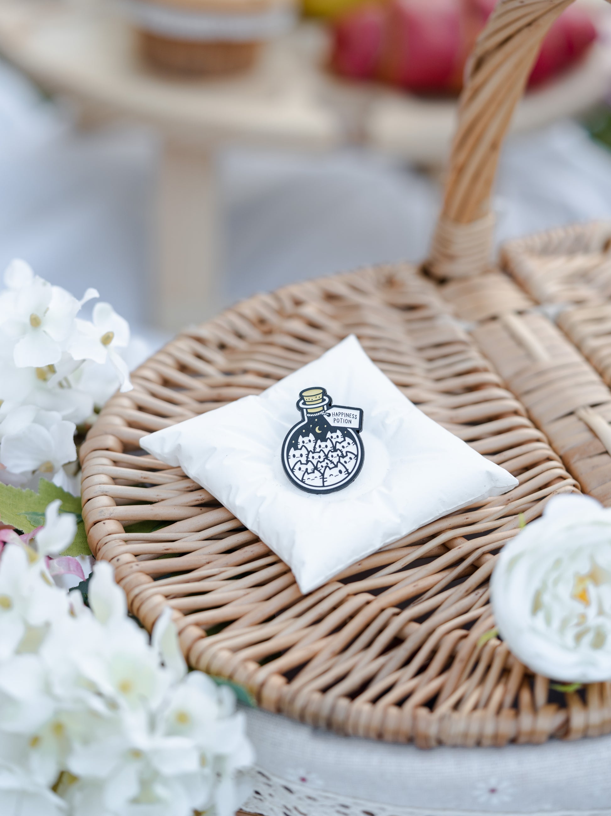 Pin „Meowgic Elixir” – poțiunea fericirii în formă de pisici.