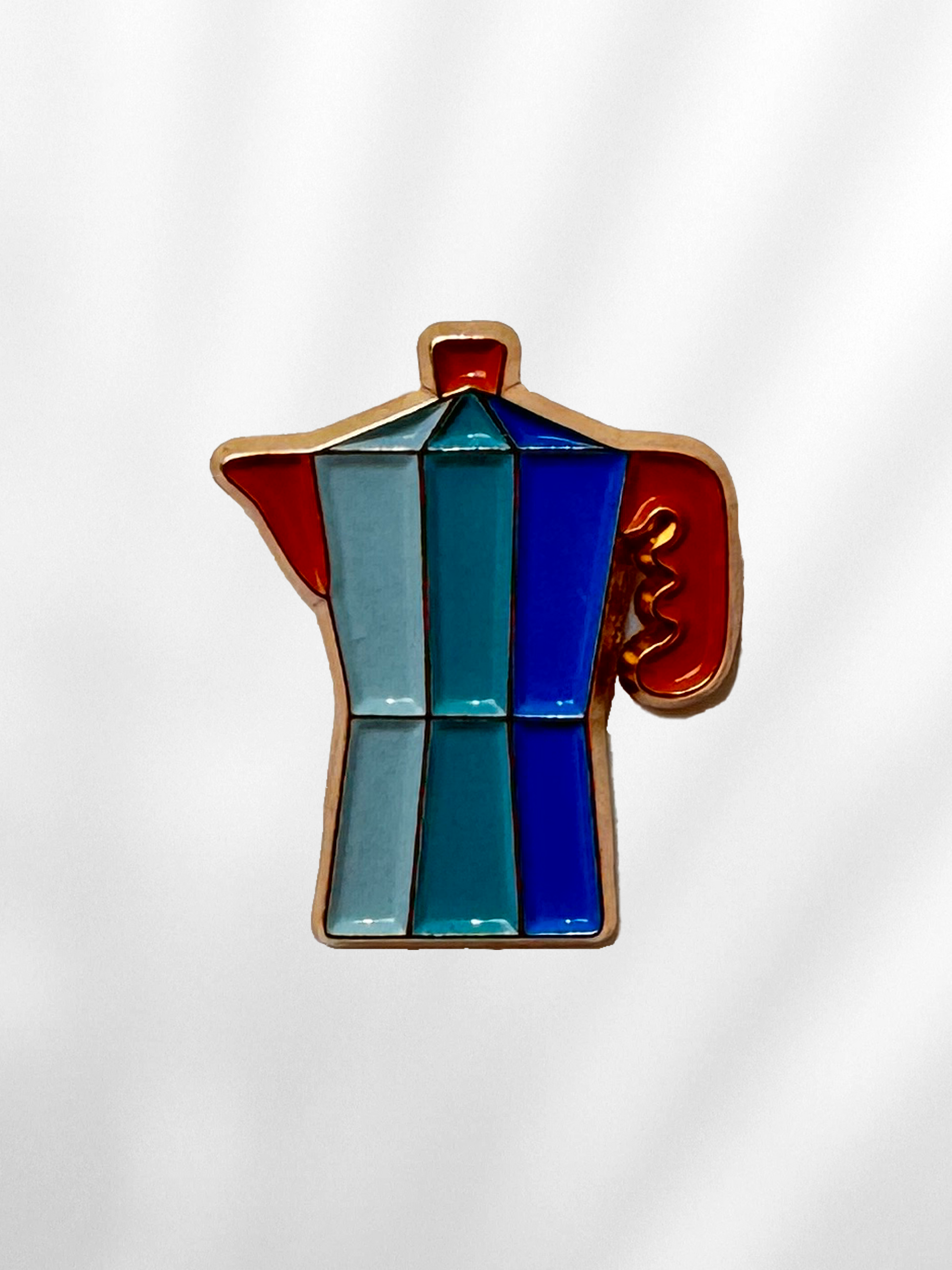 Pentru iubitorii de cafea și pasionații de design, acest pin inspirat de celebra cafetieră Moka este accesoriul perfect! Cu un stil modern și culori vibrante, îți aduce aminte de aroma unei cafele perfecte, indiferent unde te afli.