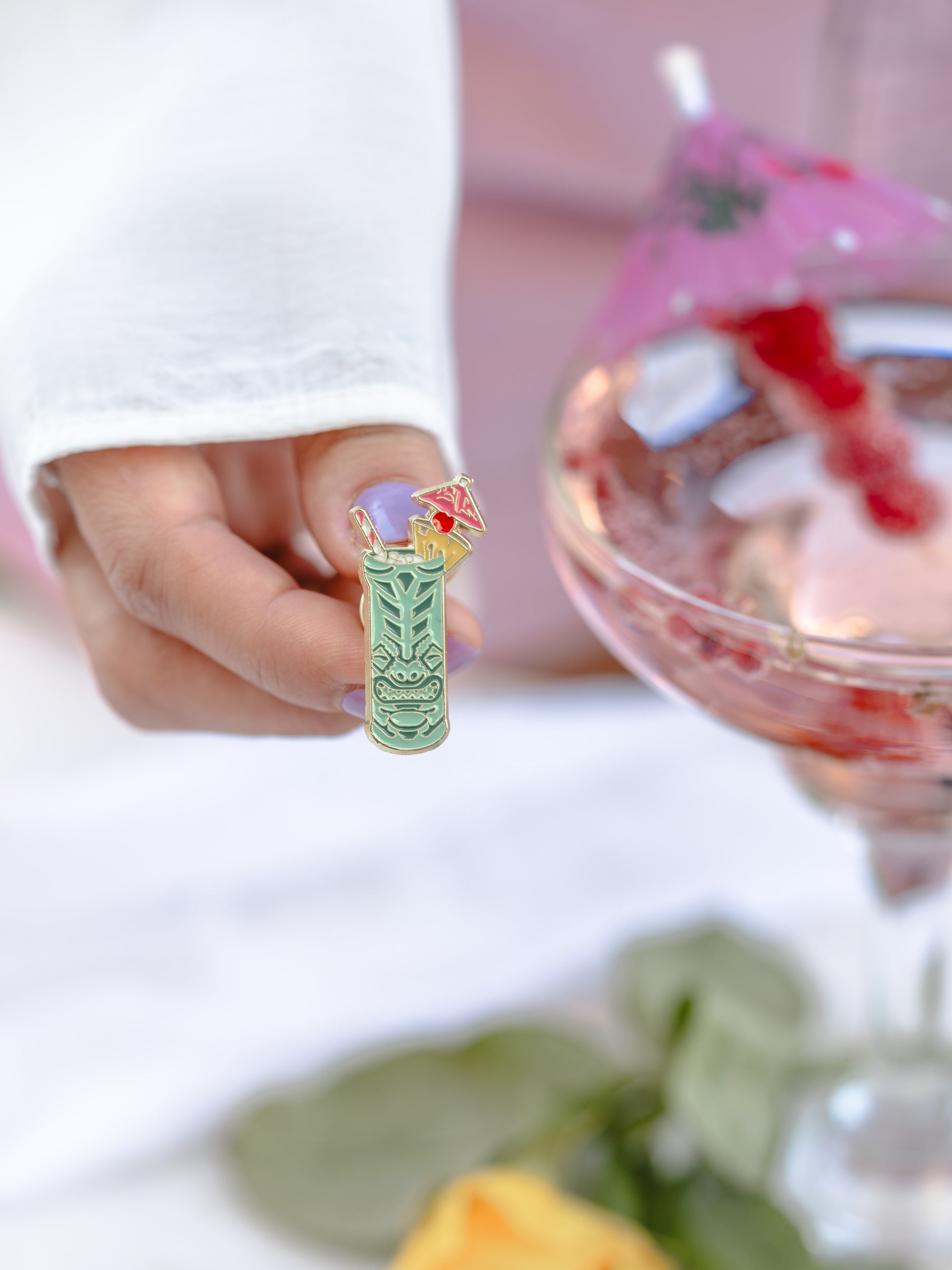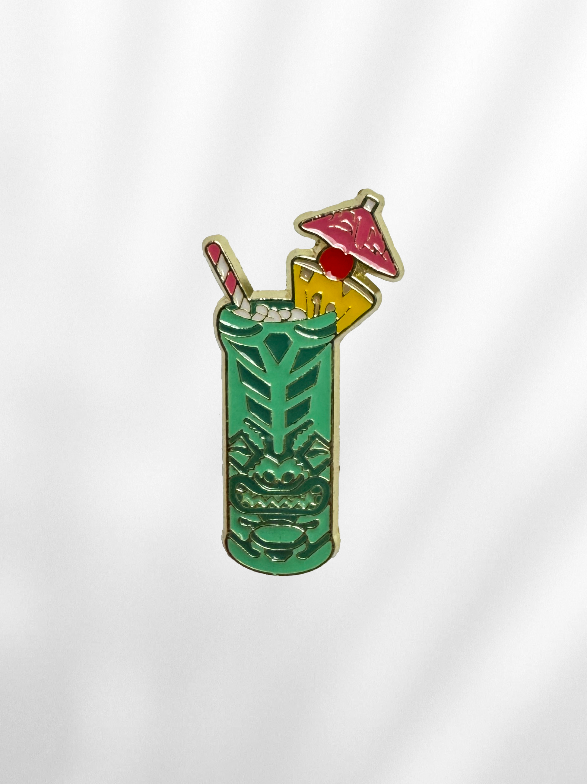 Inspirat de paharele tiki și spiritul petrecerilor exotice, acest pin e o mică vacanță cu umbrelă și rom în buzunarul tău. Îndrăzneț, jucăuș și cu o tentă spirituală – exact ca o seară bună.