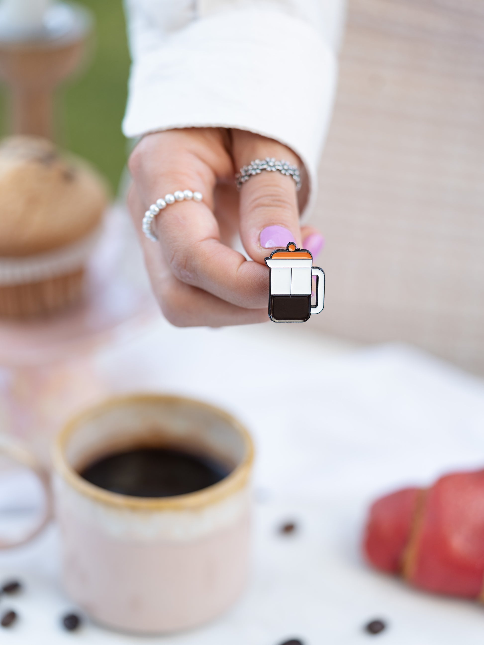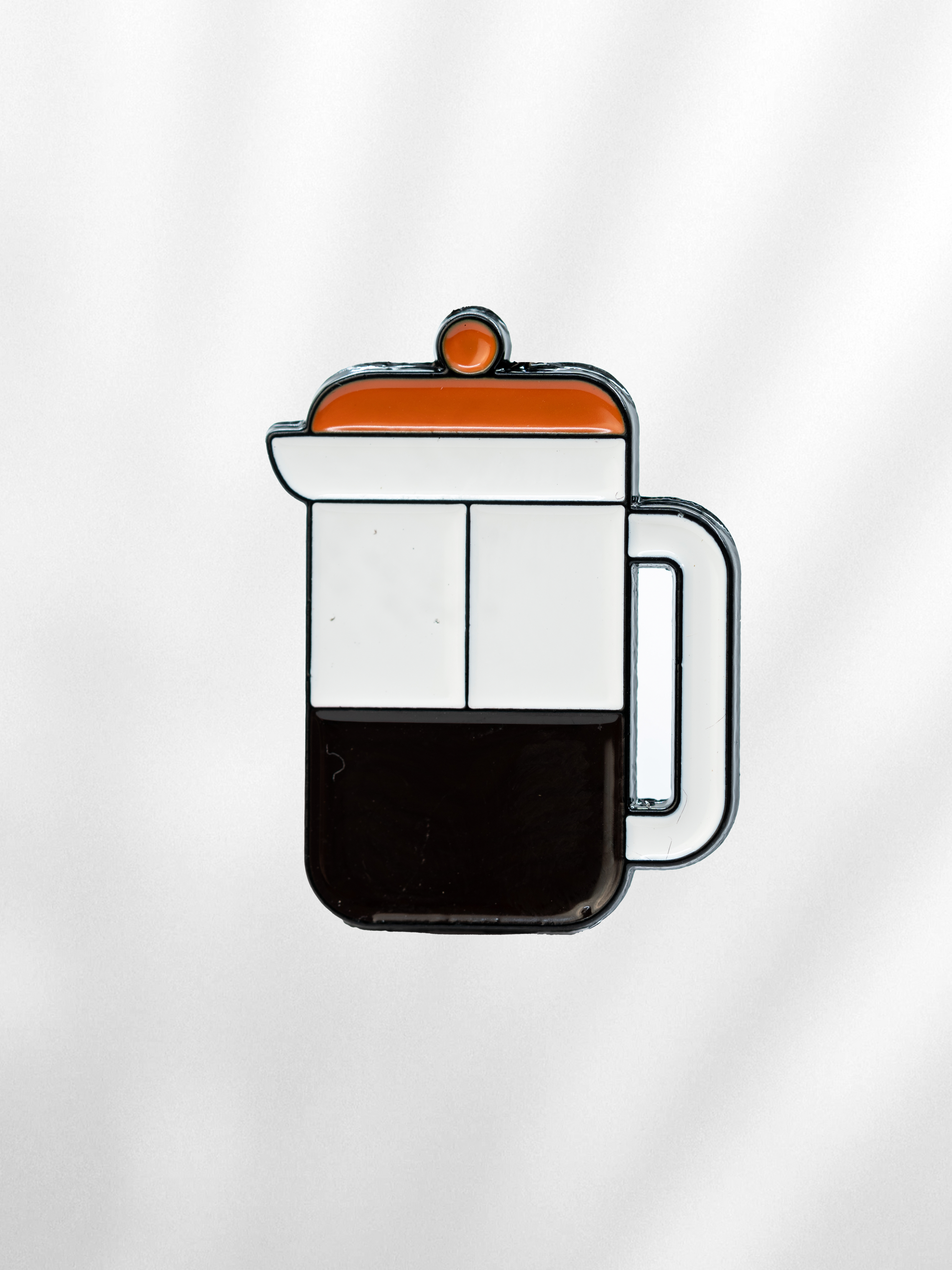 Pin „Press to Impress” – Cafeaua perfectă, mereu cu tine!