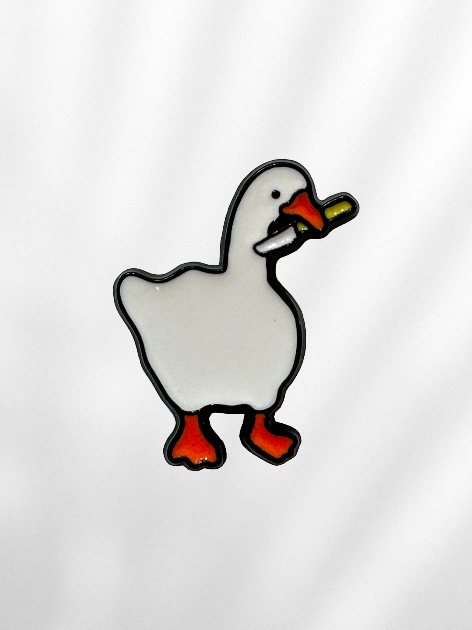 Pentru cei care își amintesc de Francesca, celebra gâscă rebelă a televiziunii românești, acest pin este un omagiu perfect! Cu un design simplu, dar plin de personalitate, Francesca revine în forță – și da, acum are un cuțit în cioc!