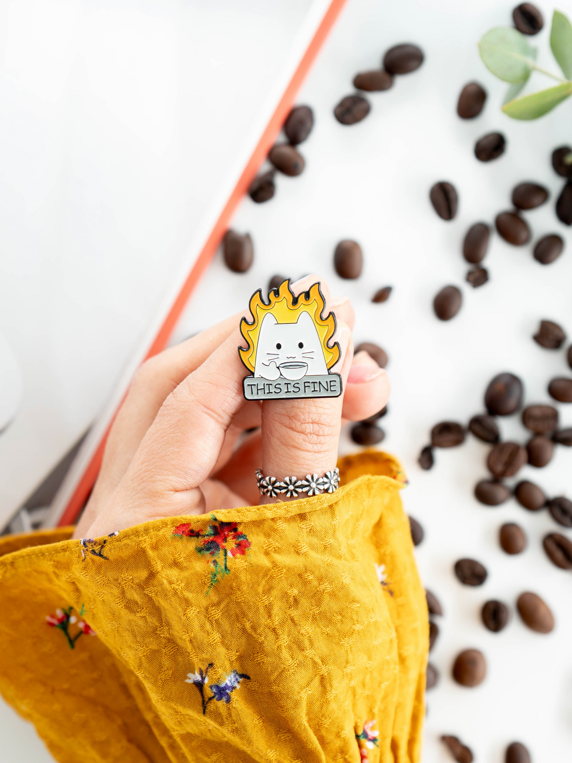 Pin „This Is Fine Cat” – calm pisicesc în mijlocul haosului.