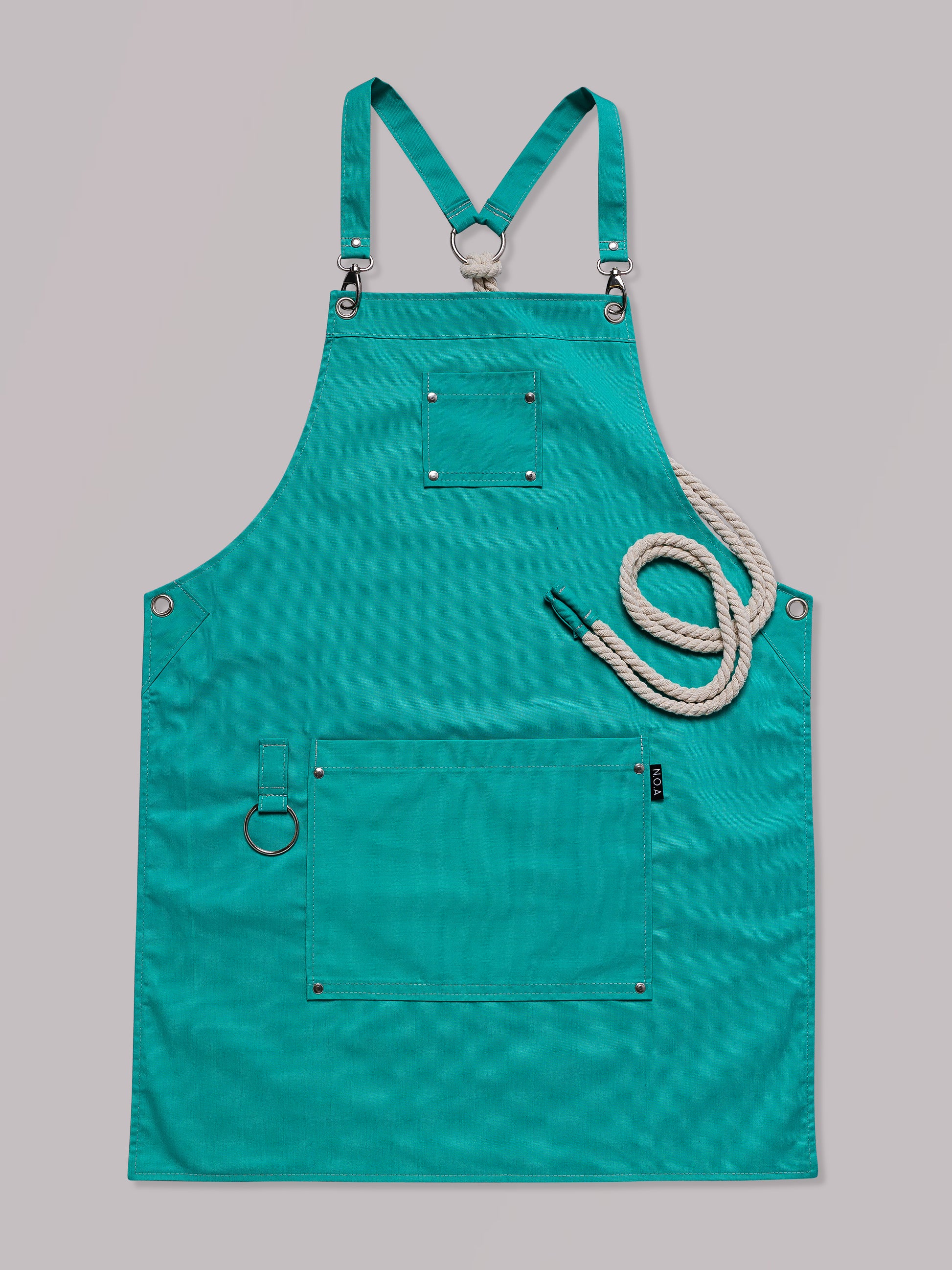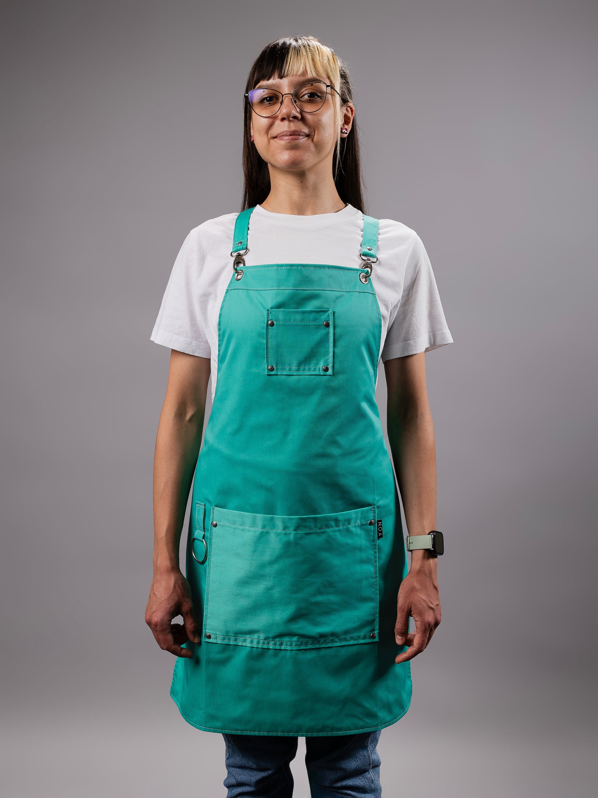 Cool Mint – Șorț profesional verde mentă, cu bretele textile și prindere în X