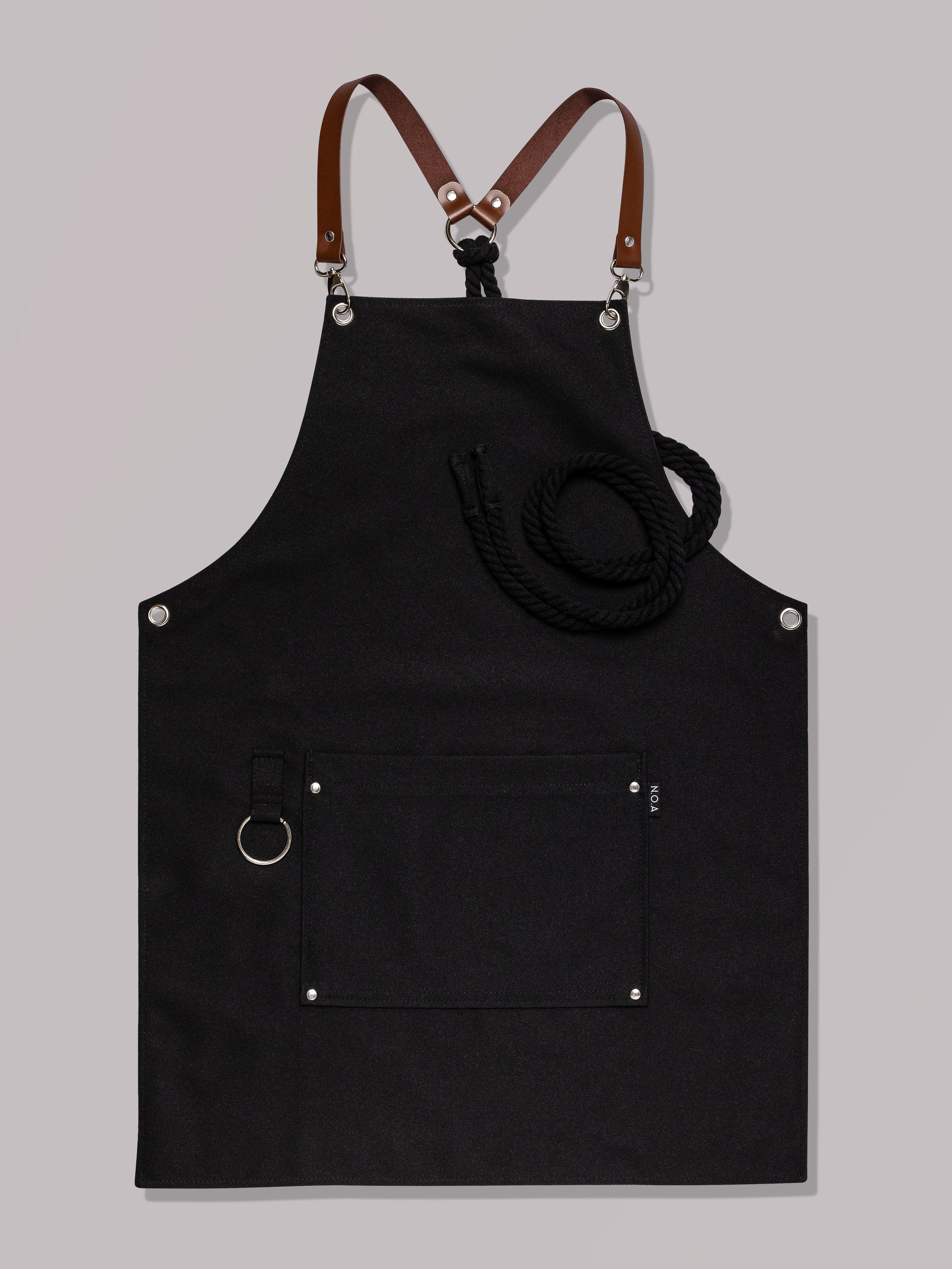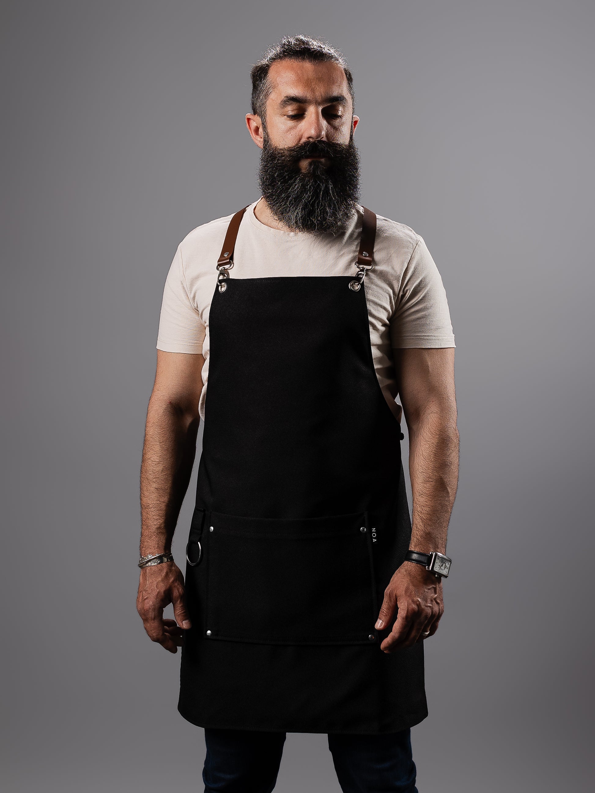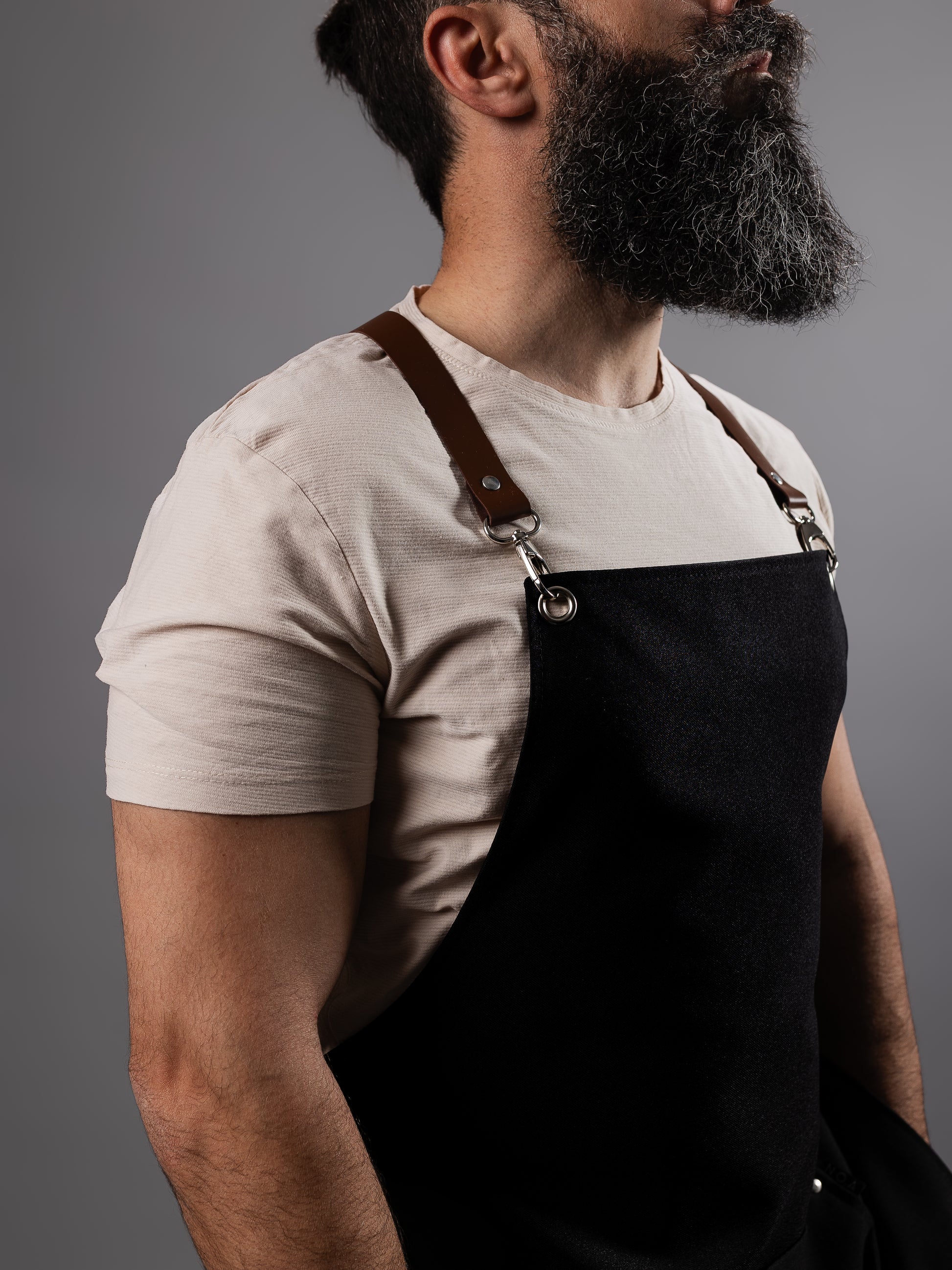 Espresso Noir – Șorț profesional barista, unisex, cu bretele din piele naturală