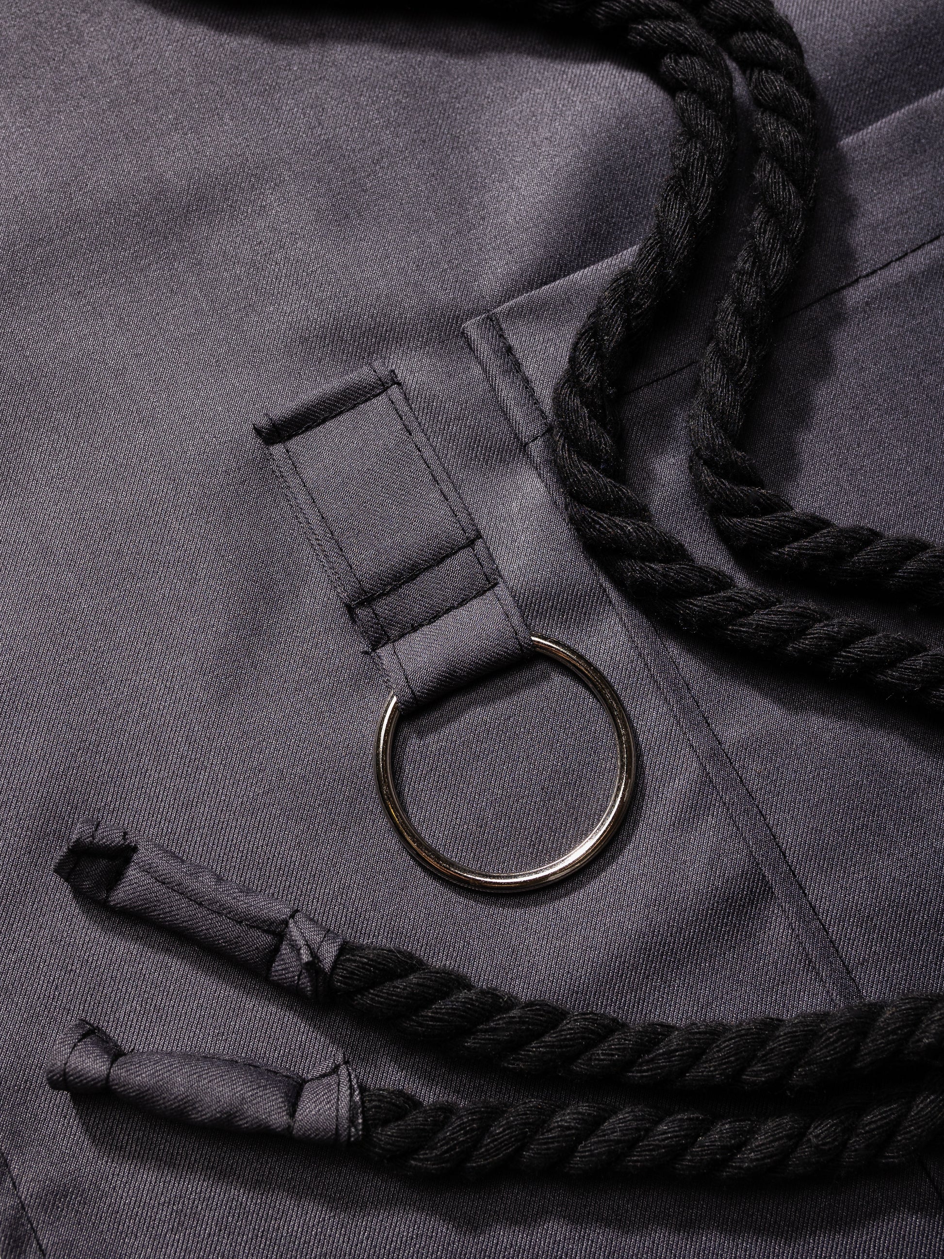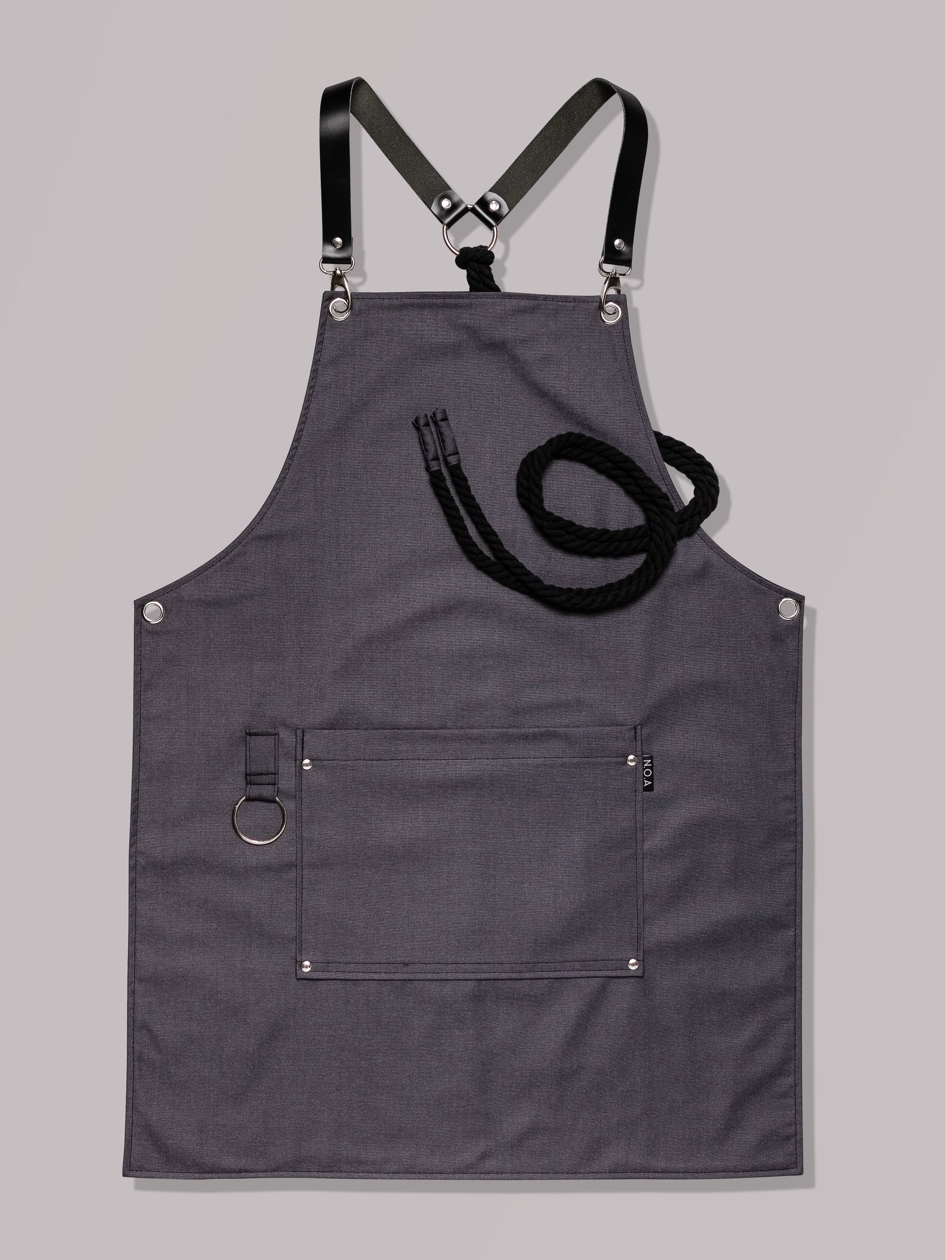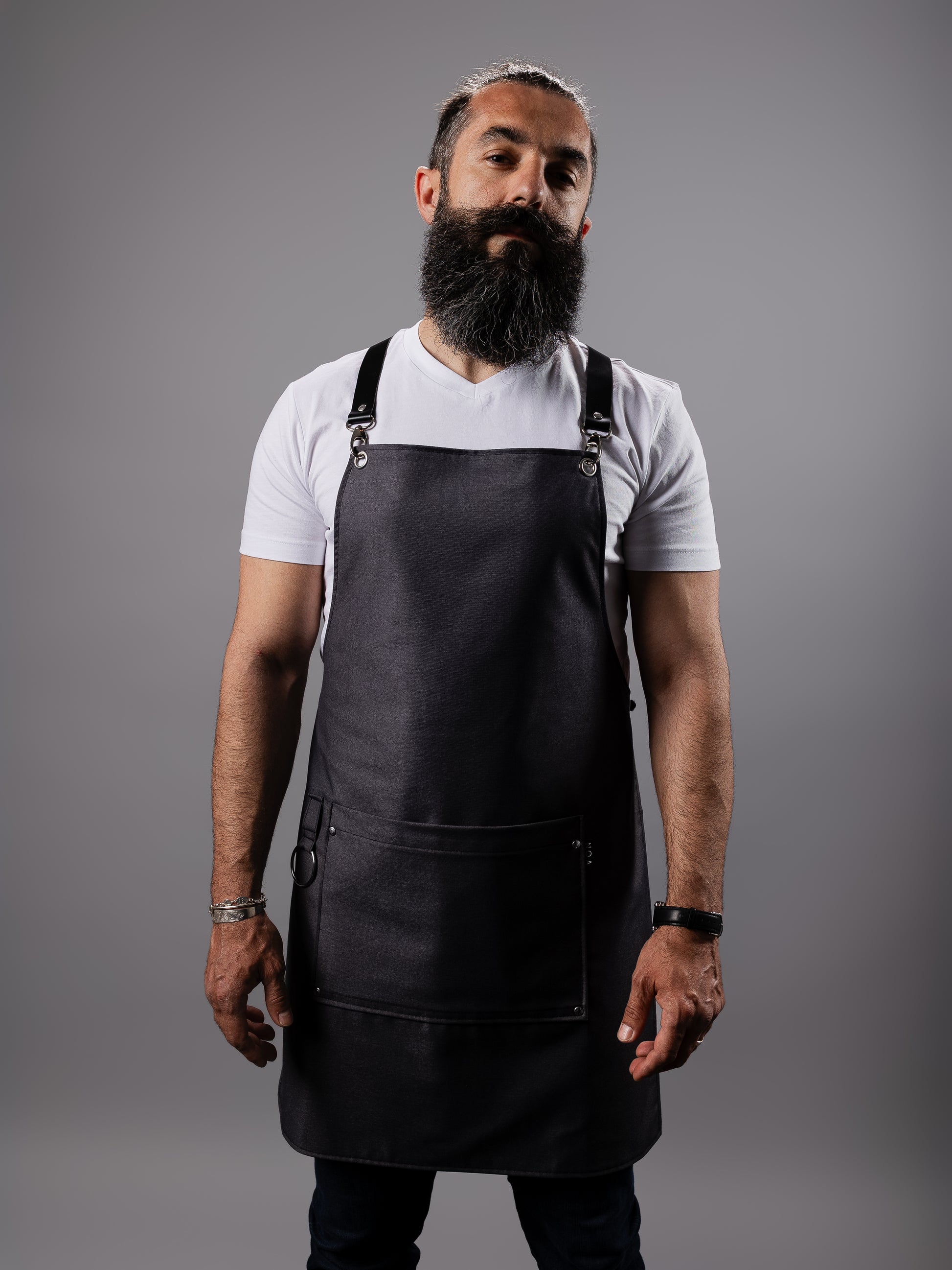 Grey Trace – Șorț profesional gri închis cu bretele negre din piele naturală