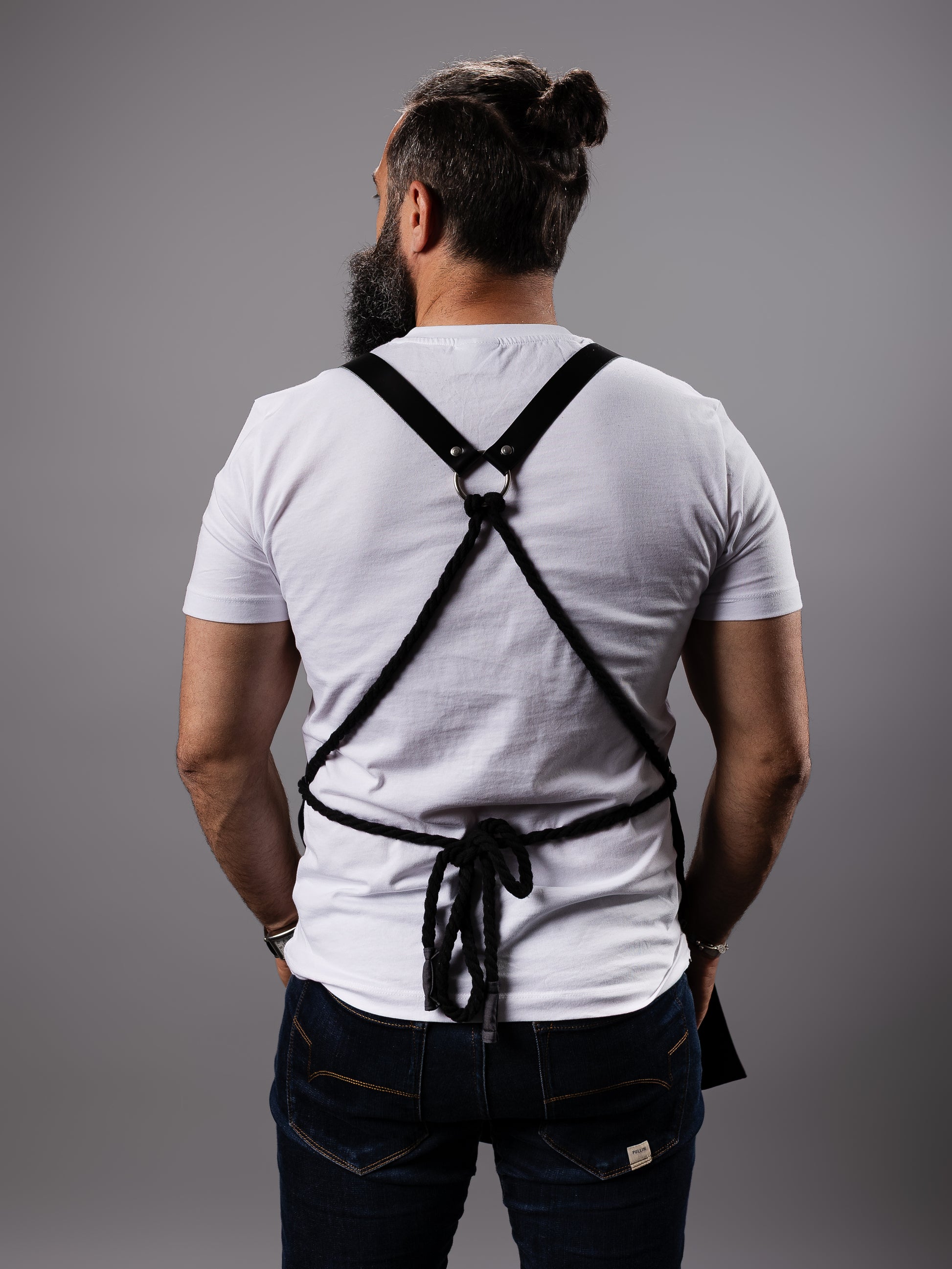 Grey Trace e despre claritate, echilibru și detalii care contează. Fabricat din material textil gri antracit, acest șorț este completat de bretele negre din piele naturală și un șnur textil gros, negru. Minimalist, dar impunător, este perfect pentru barista, chefi, barmani, somelieri sau creativi care preferă stilul urban, sobru.