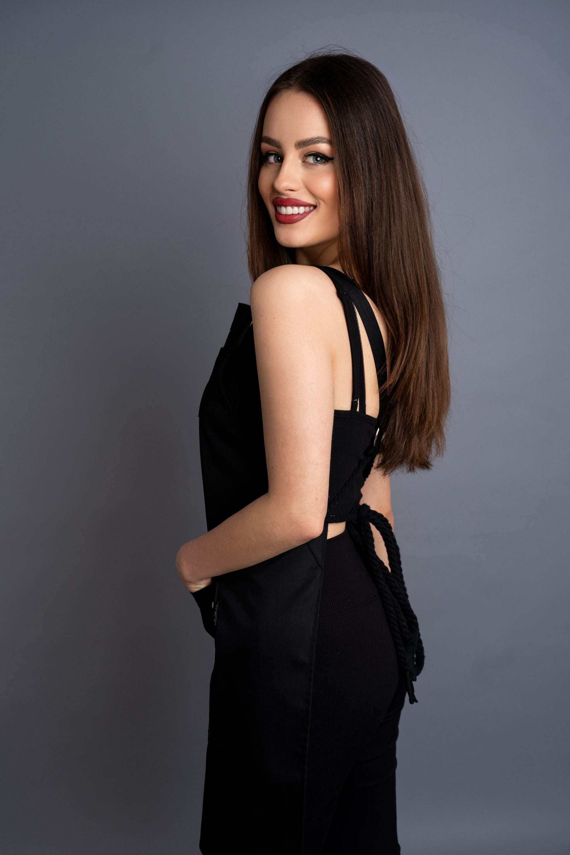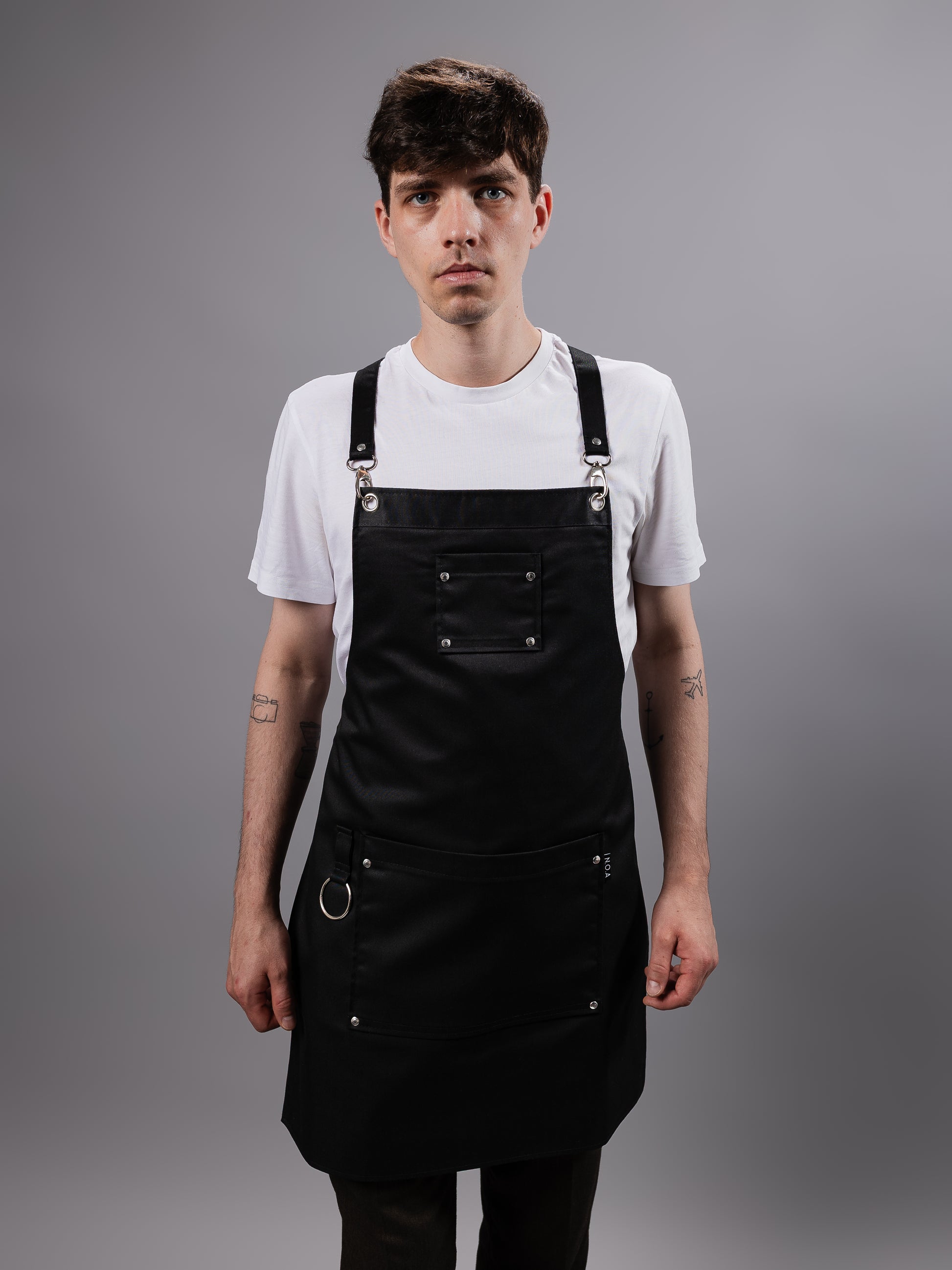 Realizat din textil tehnic rezistent și dotat cu bretele textile reglabile, este confortabil, durabil și ușor de întreținut – perfect pentru ritmul intens din cafenele, baruri sau studiouri.